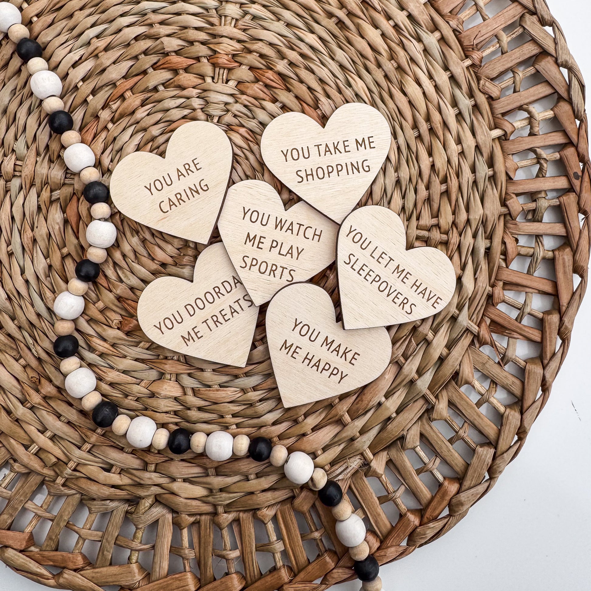 You get to customize the front design from your choice of 3 designs (see design options in photos). As well as personalizing 10 heart tokens with 10 different messages that makes them special to you.