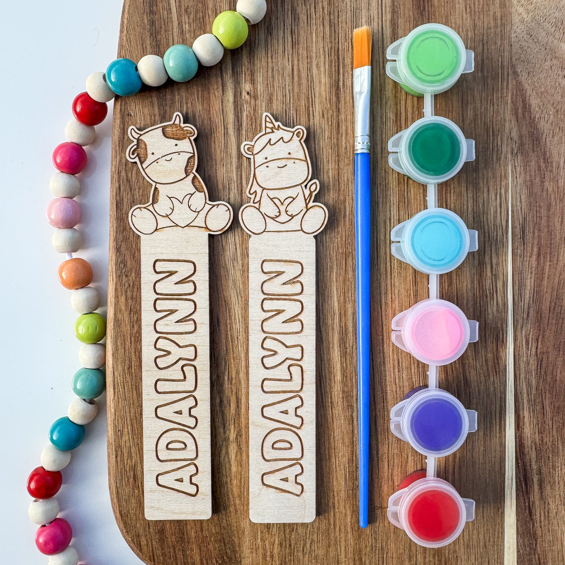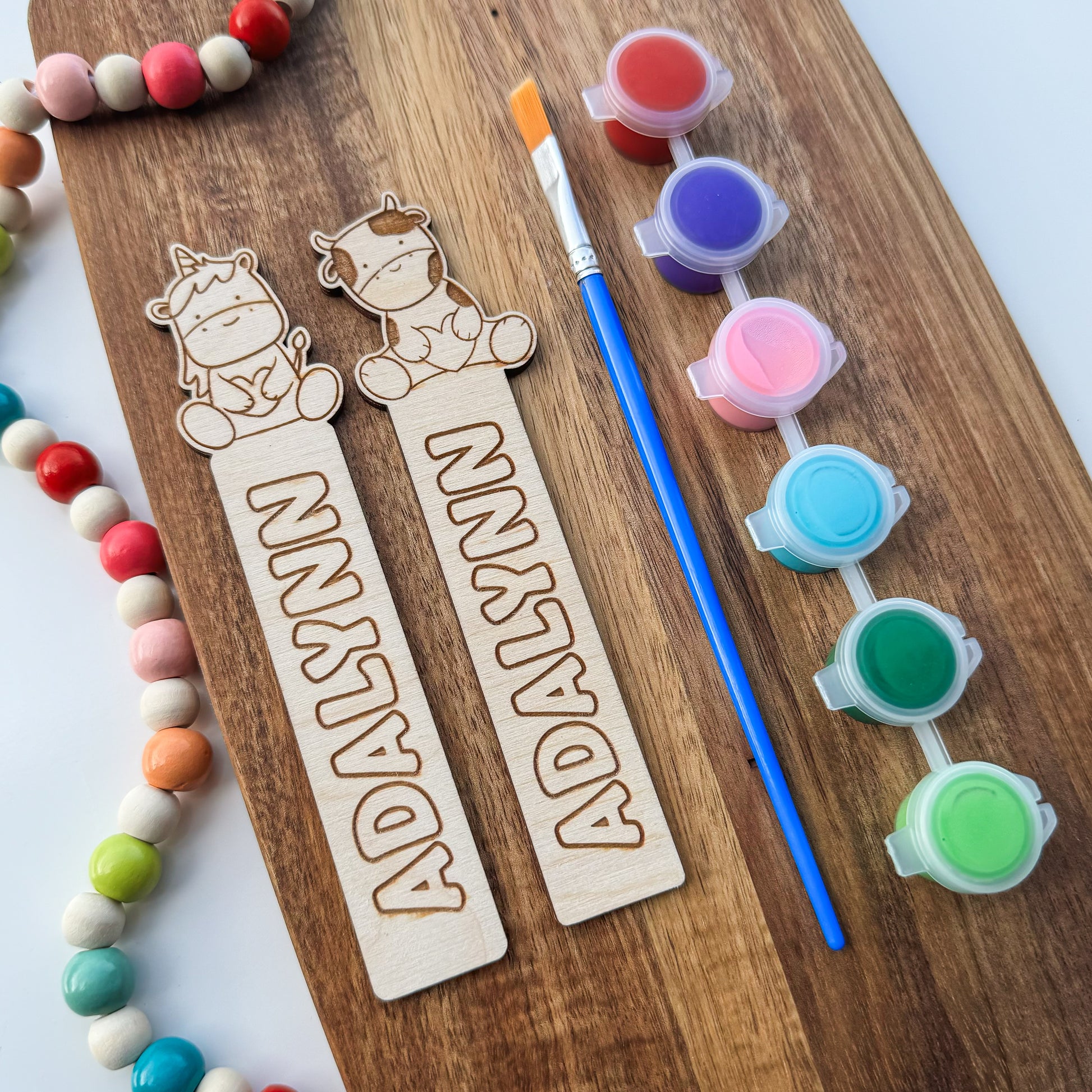 A unique craft kit for the reader in your life! This kit comes with 2 personalized bookmarks to paint and create. Everything you need is included in the kit; two wood bookmarks, paint strip with 6 colors and paintbrush.
