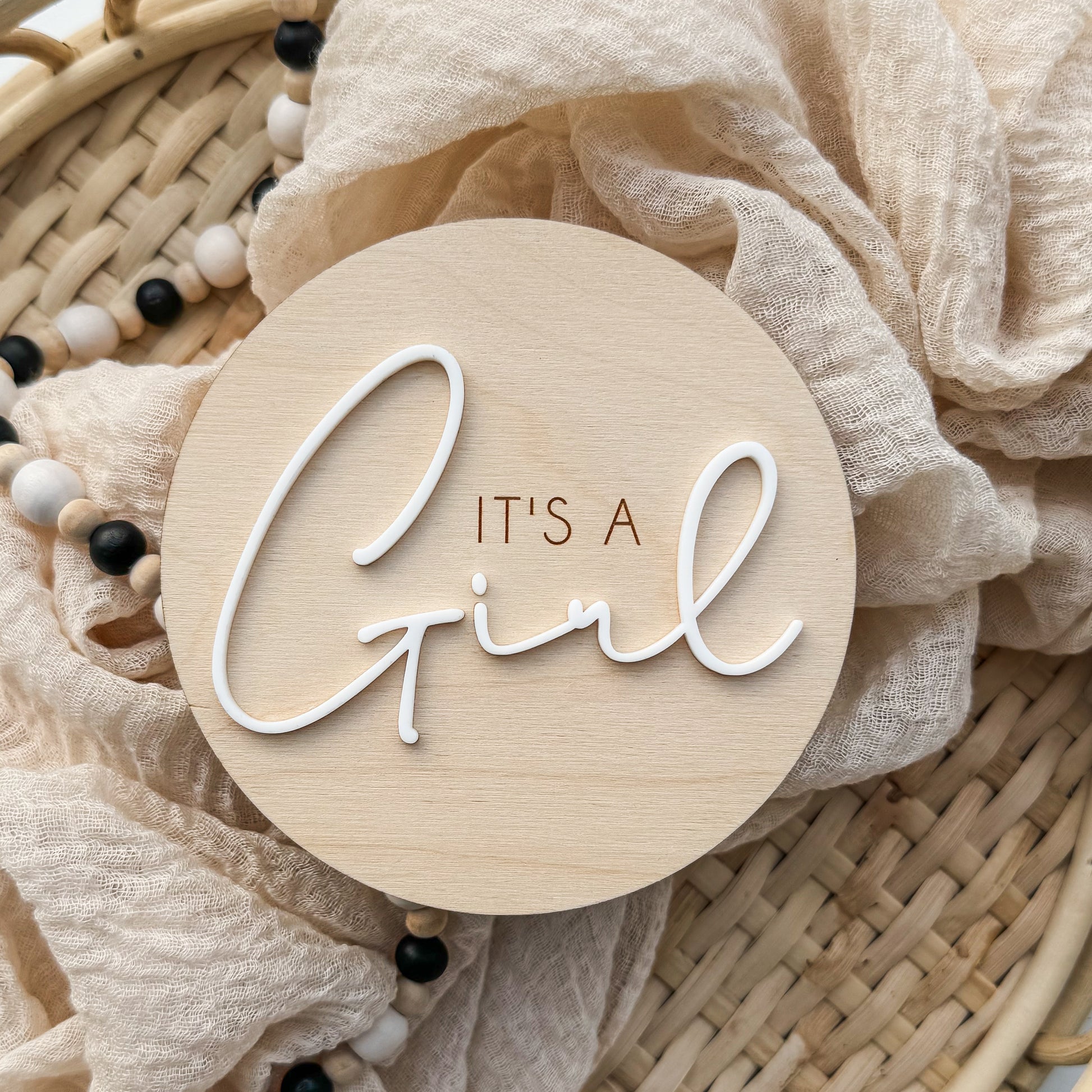 This double sided birth announcement is perfect for the parents awaiting the news of their baby's gender. One side says 'It's a Boy' the other side says 'It's a Girl'