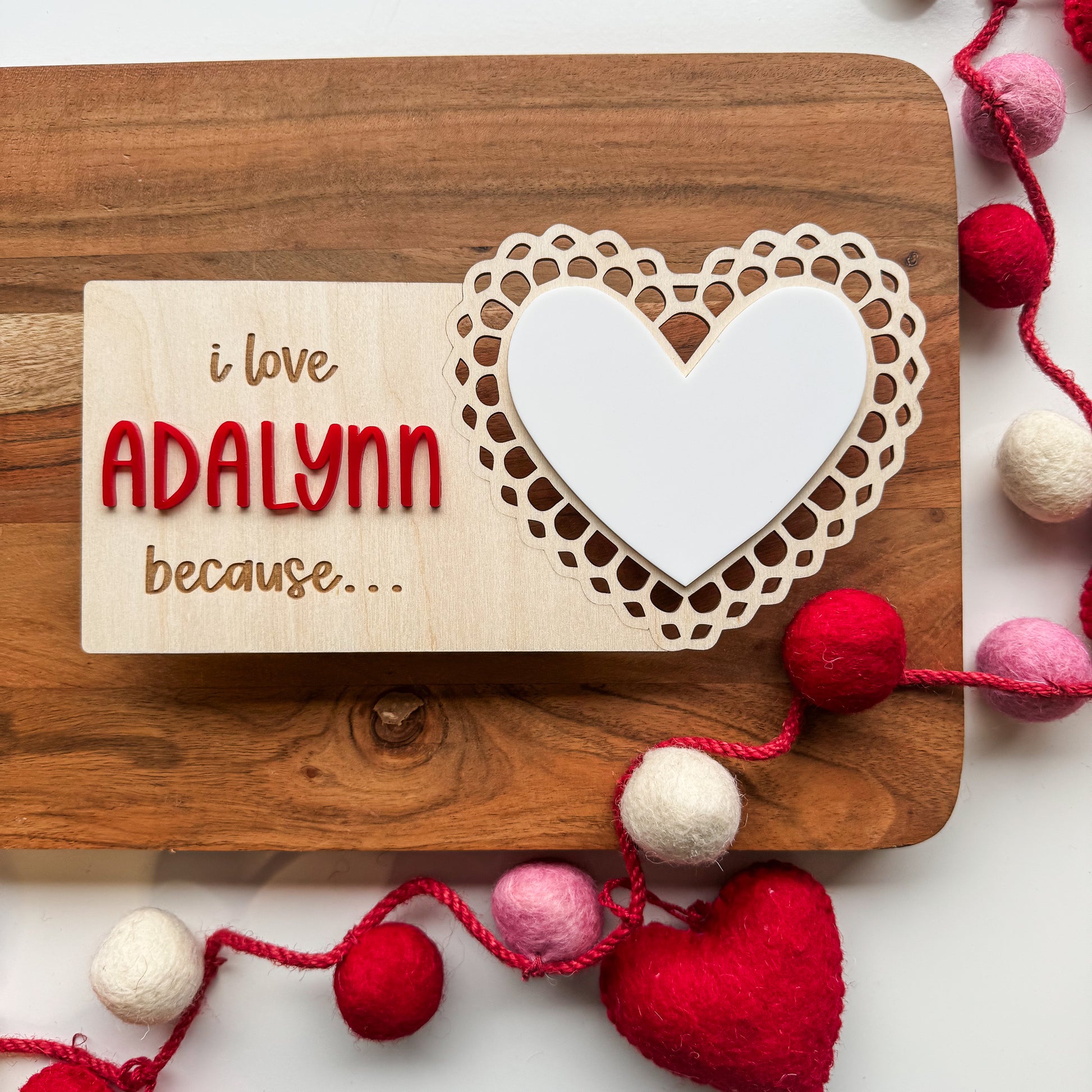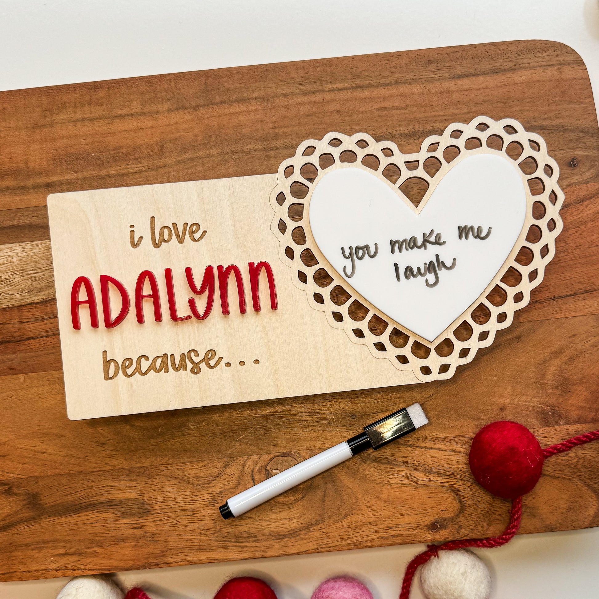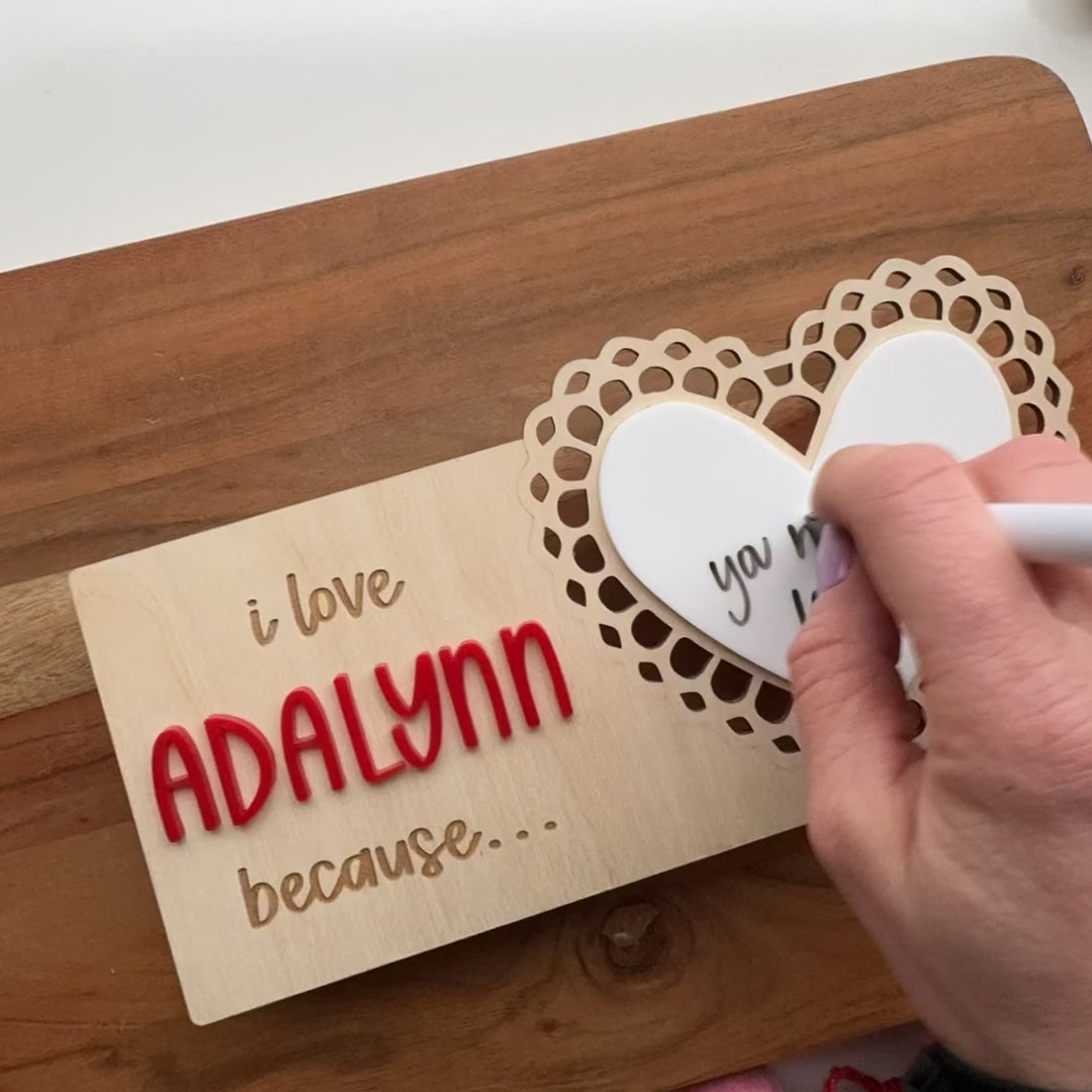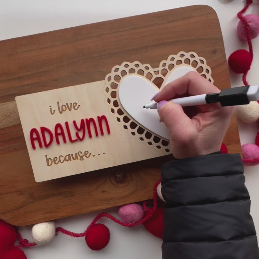 Let your kiddos wake up to another reason why you love them each day with this Valentine's Day themed dry erase love message board! Choose to have magnets or a wood stand attached to the back for easy displaying. Each board comes with a dry erase pen.