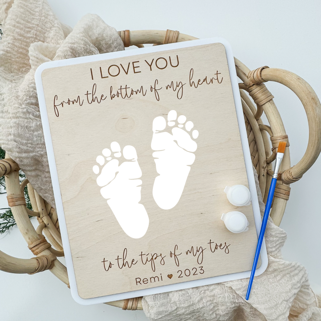 This DIY footprint art is an aesthetically appealing keepsake. A great gift for an expecting mom or gifting it to grandparents this holiday season.