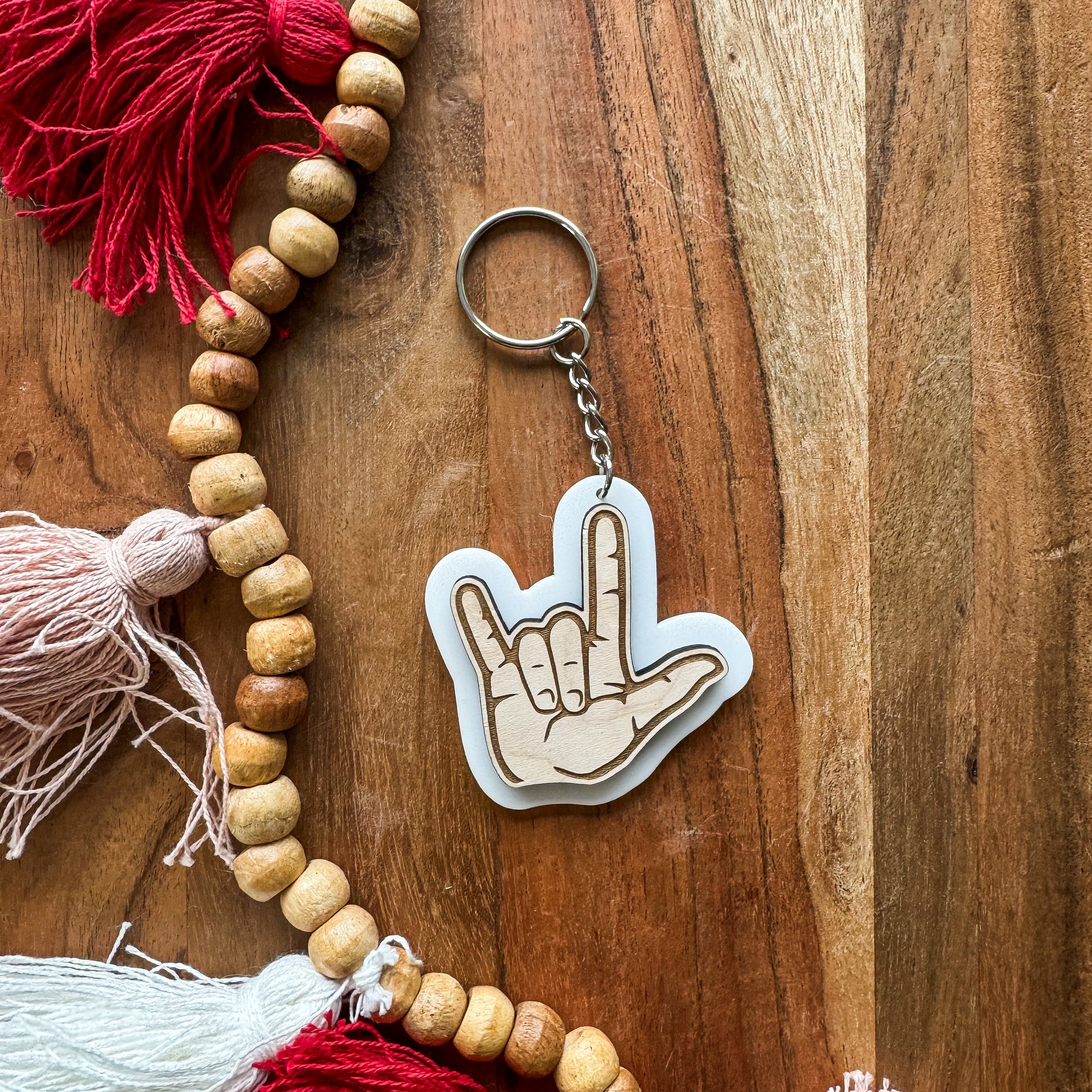 A perfect gift for your loved ones! Wood layered on white acrylic.