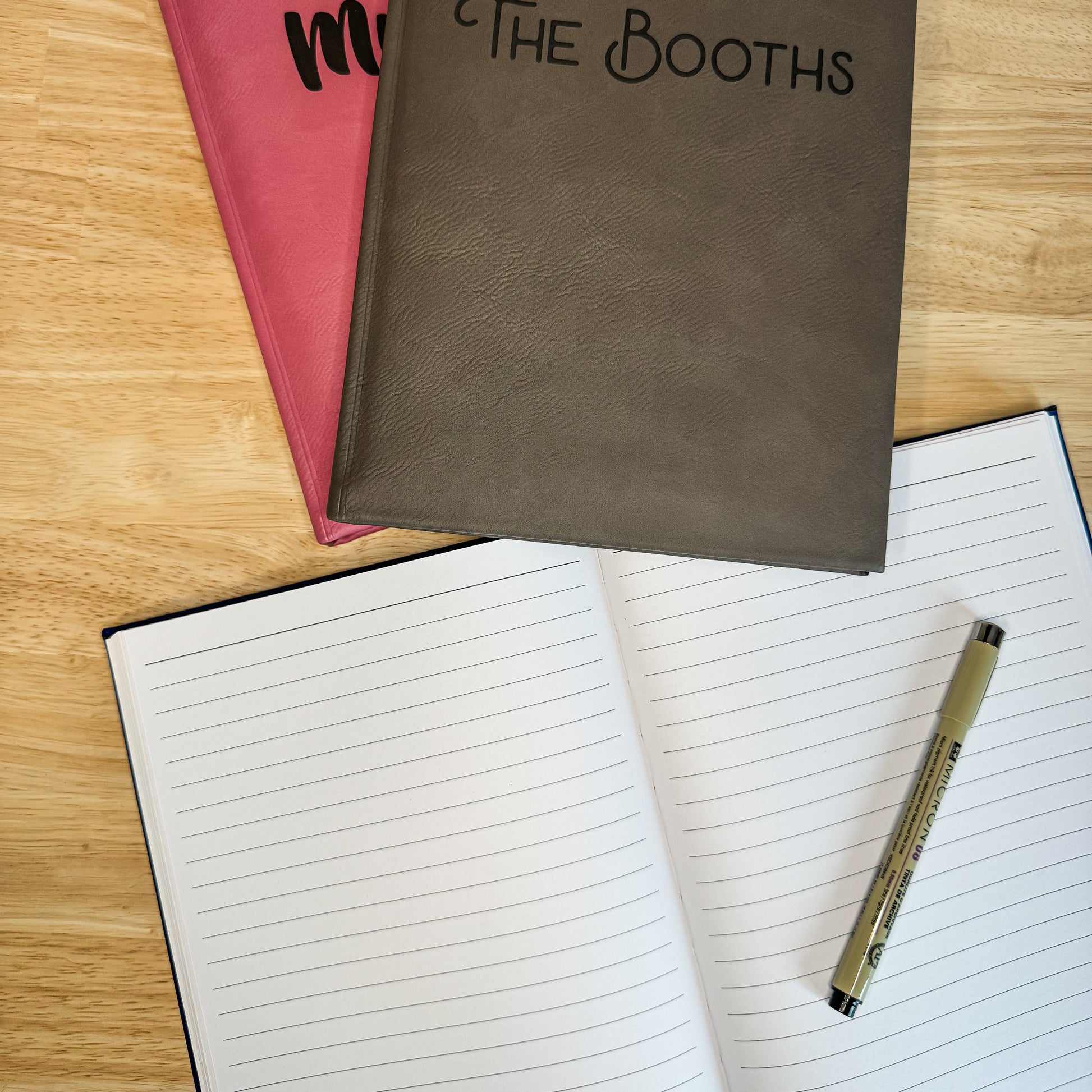Leatherette bound journals are the perfect size to slip into your backpack, brief case, or purse. The journal features 112 lined pages and a black satin bookmark.
