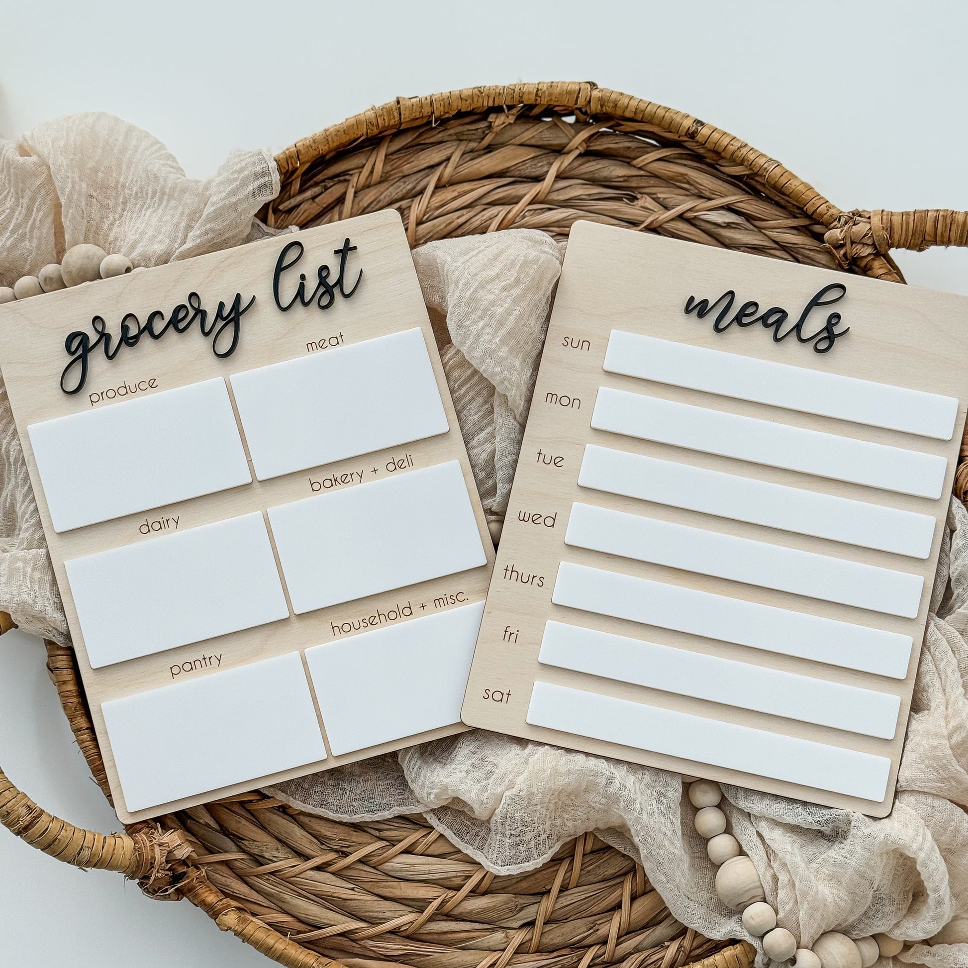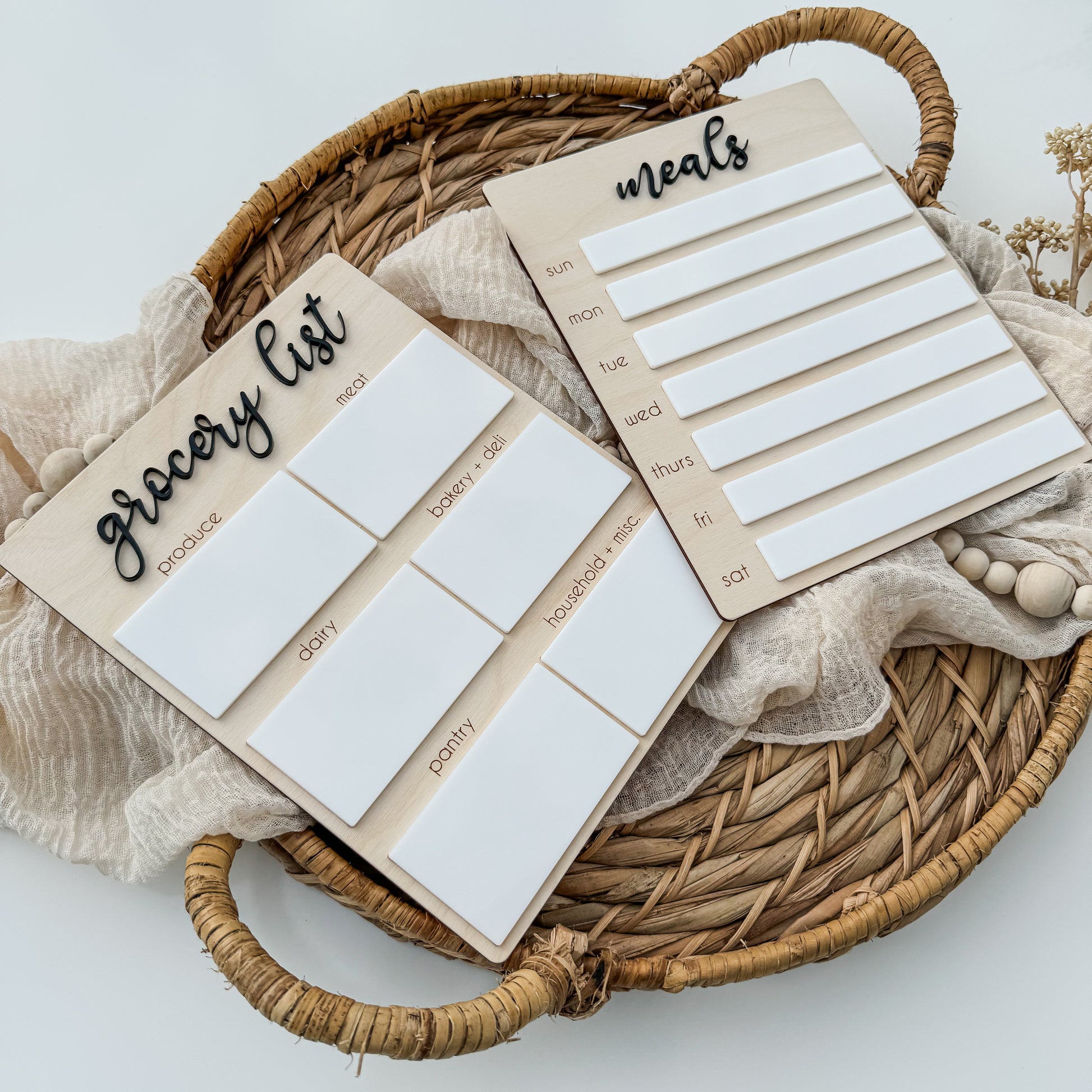 Stay organized with these magnetic dry erase menu and shopping list boards. The set comes with one grocery list board, one meals board and one dry erase pen.