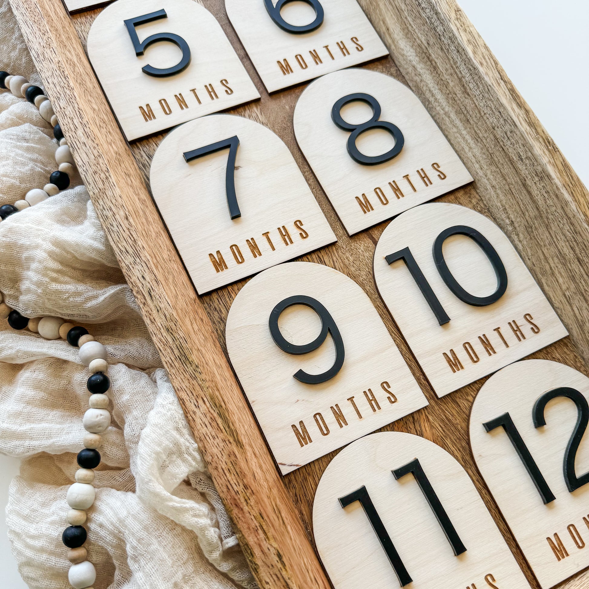 These adorable wooden monthly milestone markers are a great way to document your baby's first year of life.
