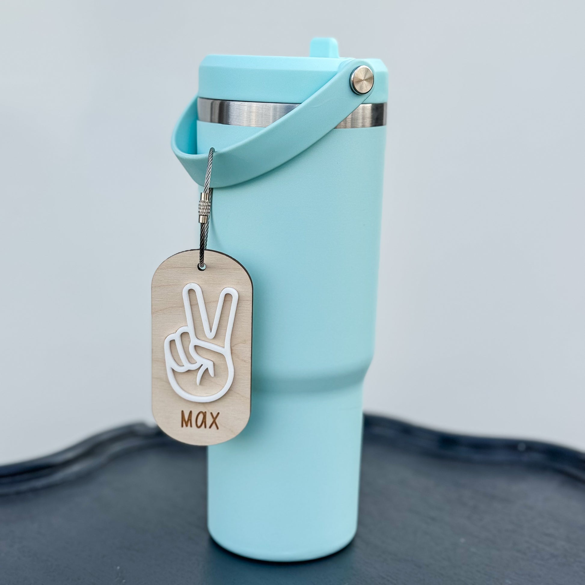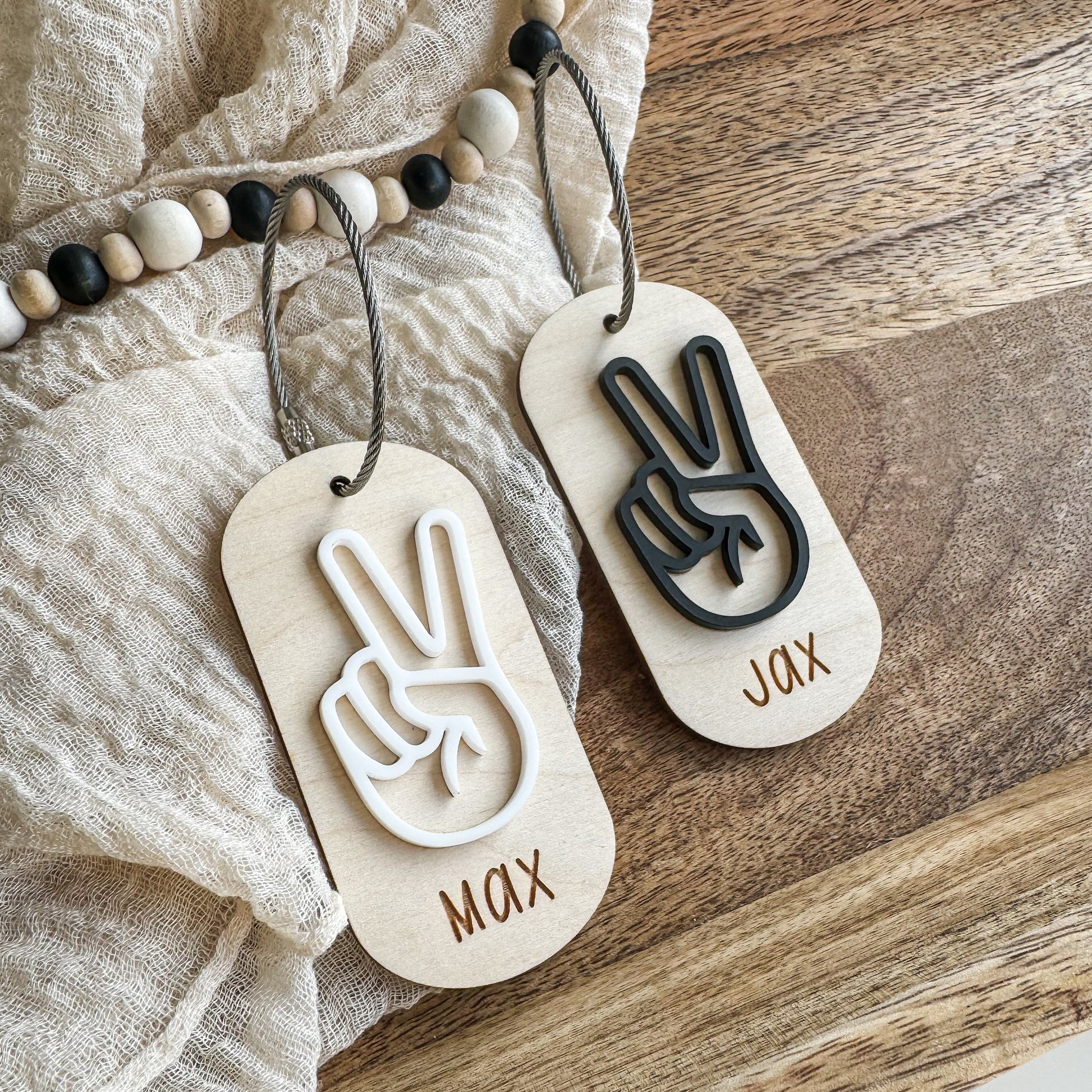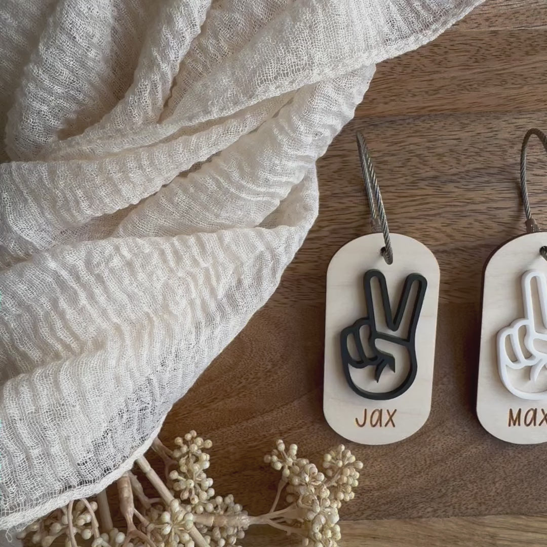 This customizable peace sign keychain/bag tag is perfect for backpacks, sporting bags and water bottles. Easily attaches with wire key ring, the twist closure ensures it wont come detached.
