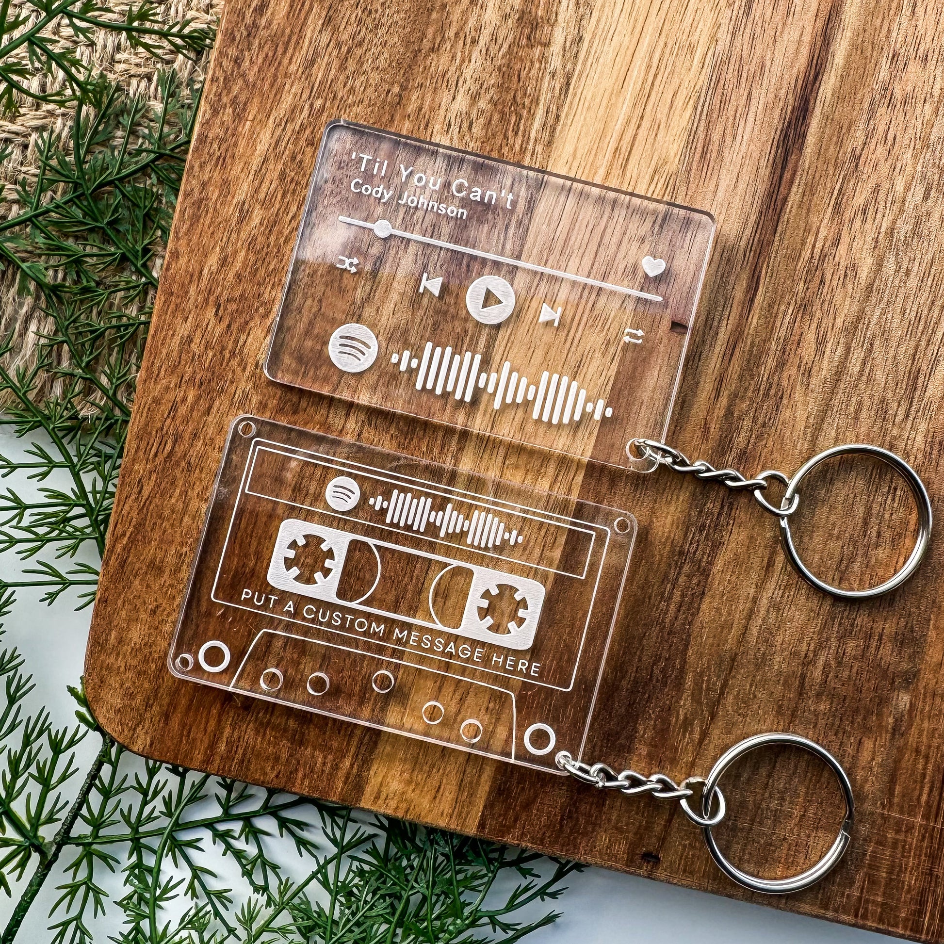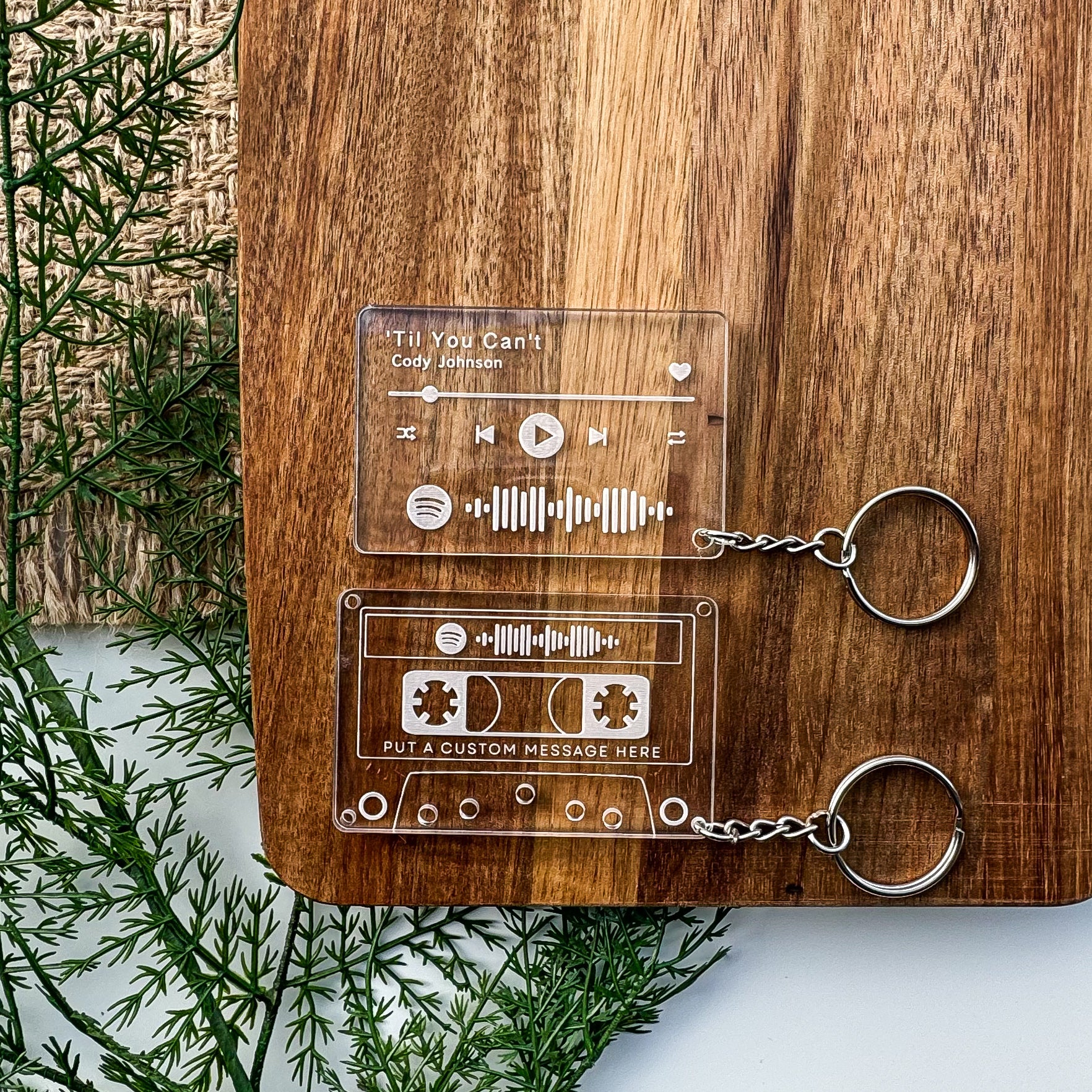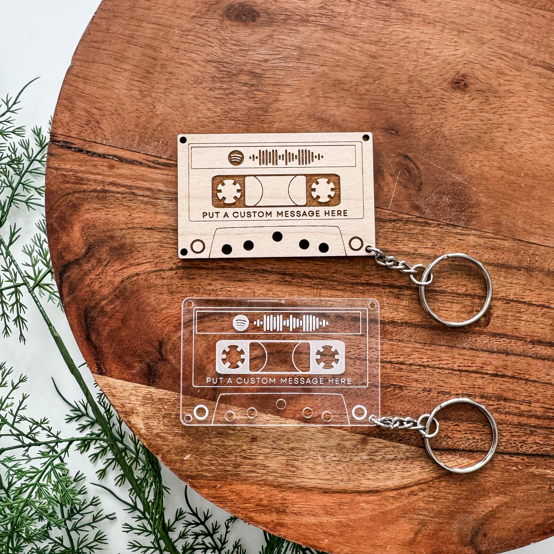 This retro cassette tape keychain can be customized with your own special Spotify code that easily scans to play a song, album or your favorite mixed tape playlist.