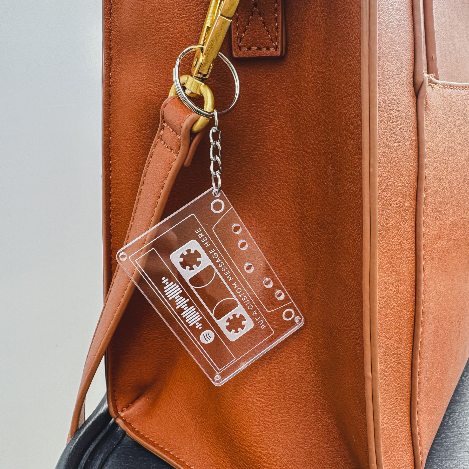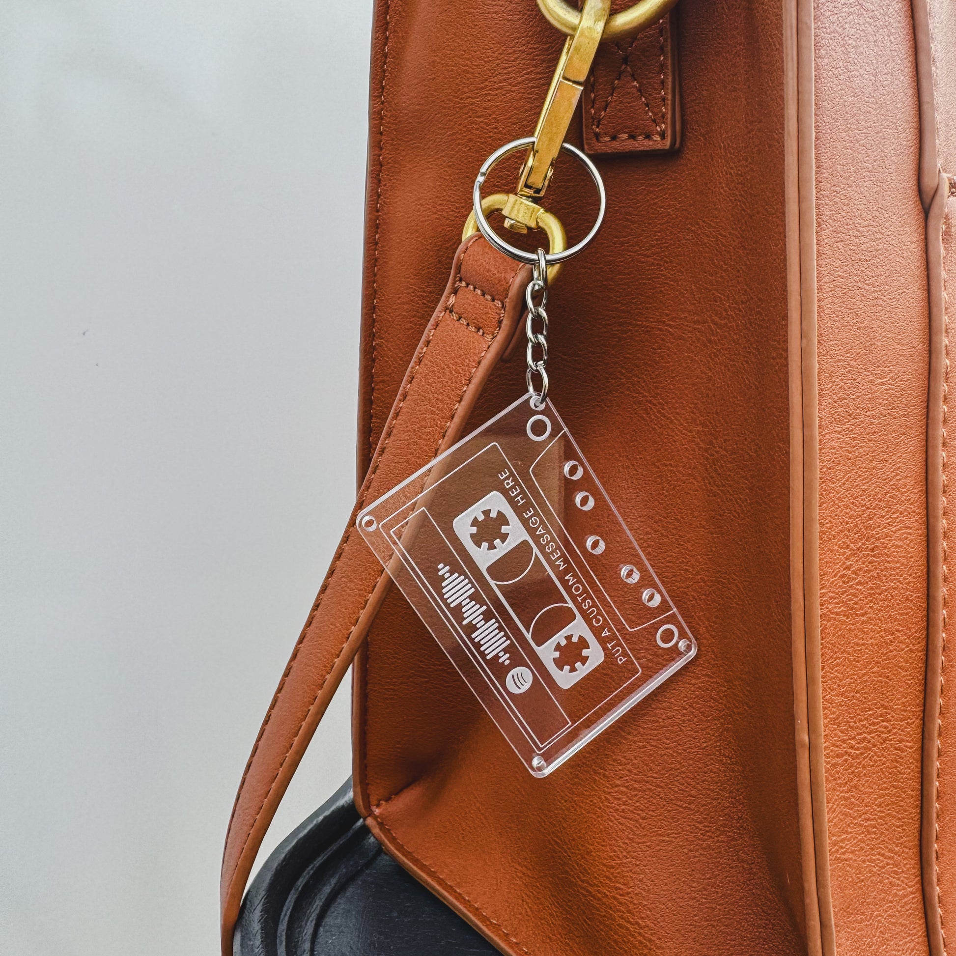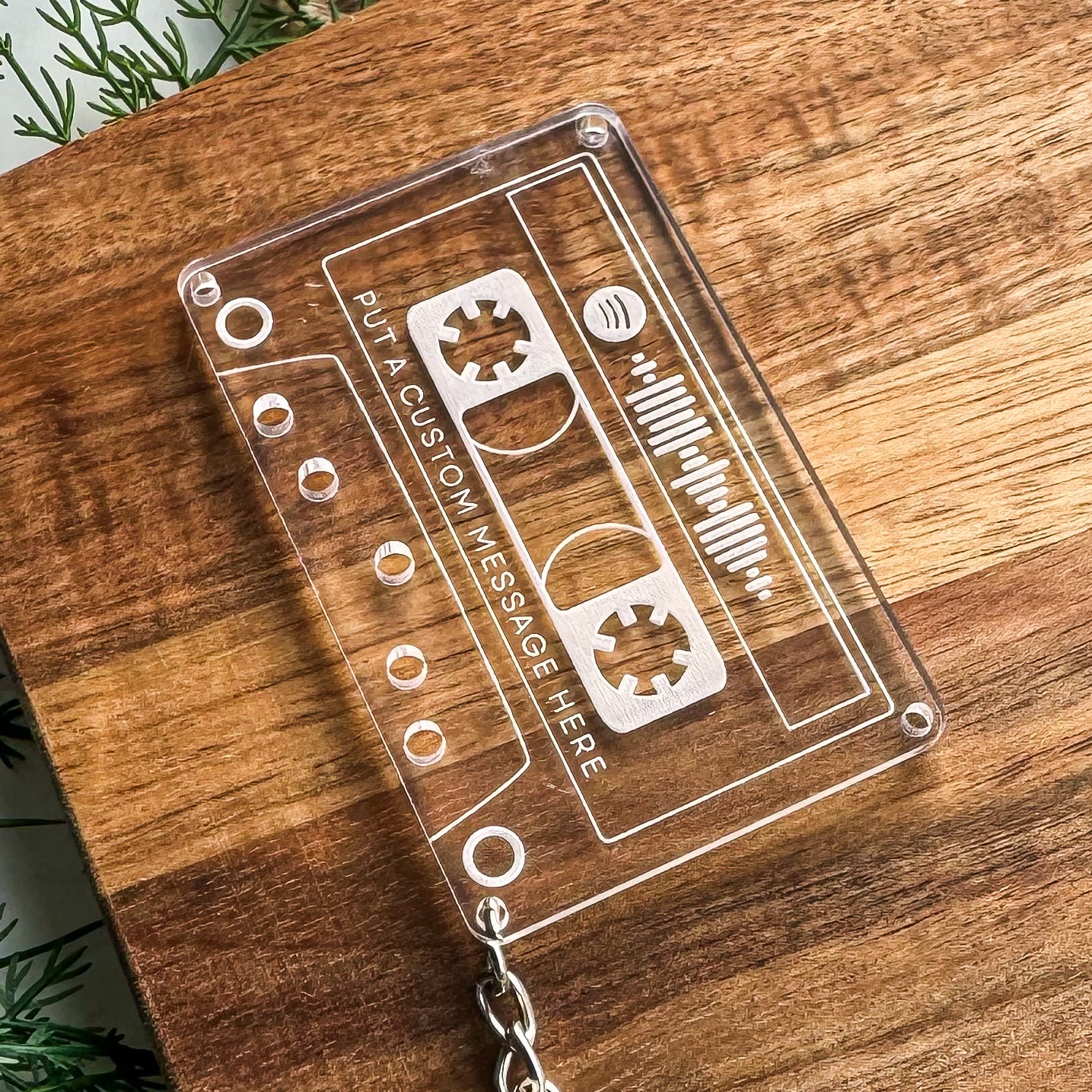 This retro cassette tape keychain can be customized with your own special Spotify code that easily scans to play a song, album or your favorite mixed tape playlist.
