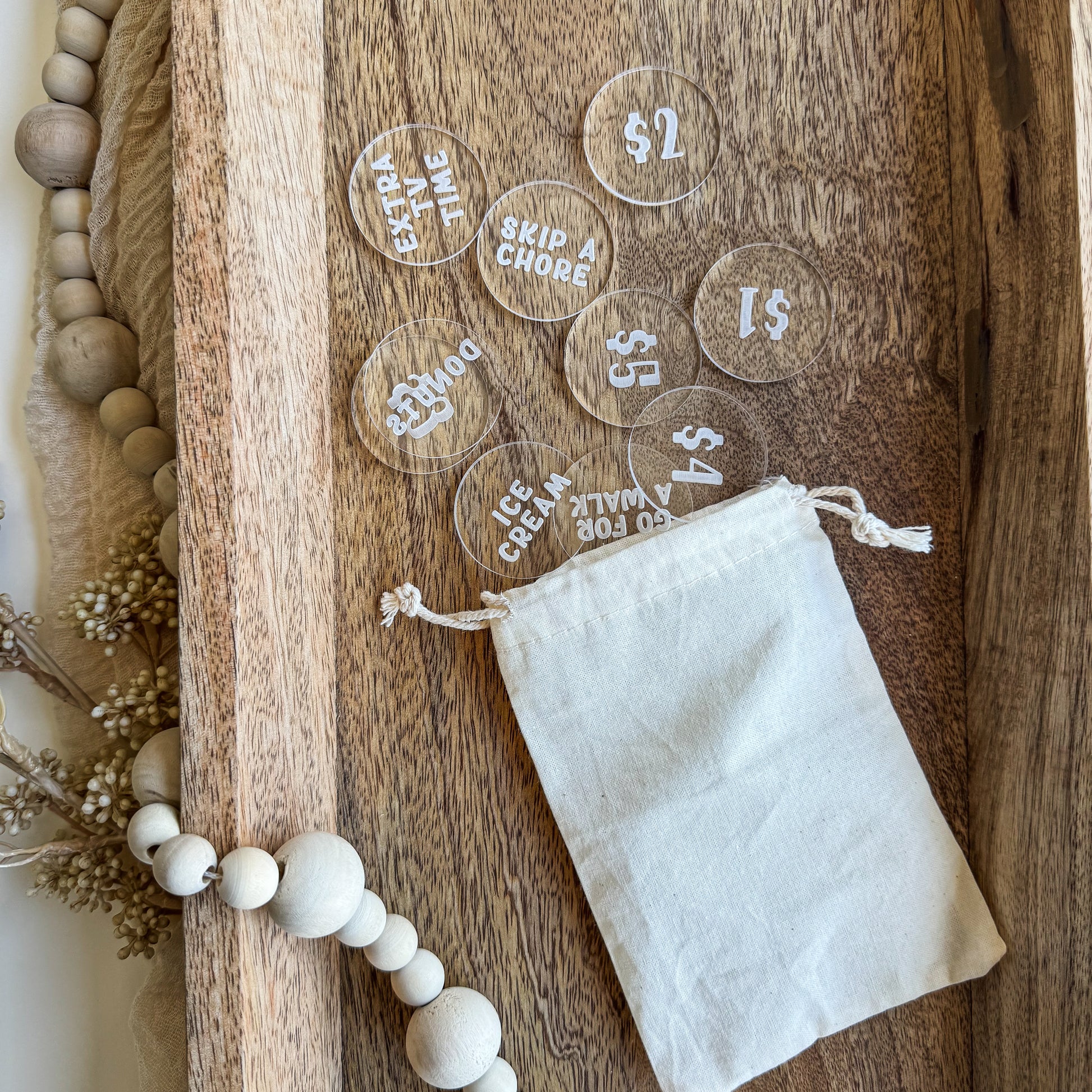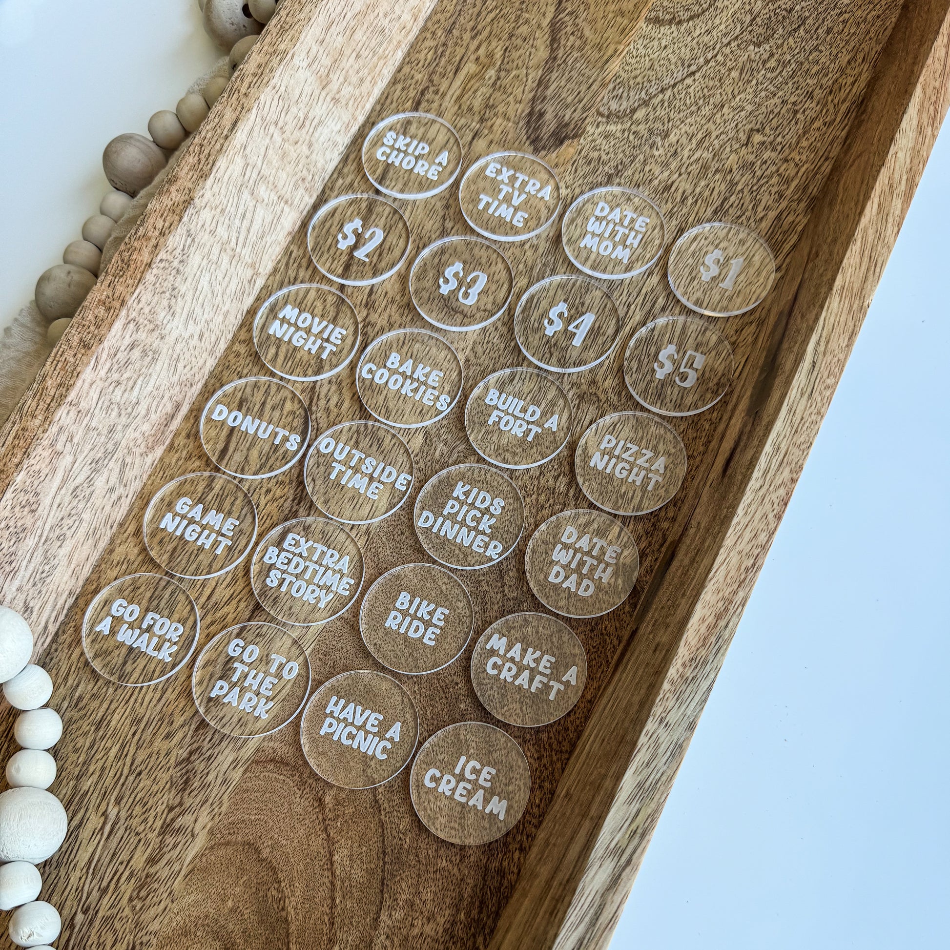 These reward tokens are a great way to reward a child for a job well done! You use them as a reward upon completion of a chore or simply as a reward for accomplishing their goal. These reward tokens give kids something fun to look forward to and can be used over and over again.