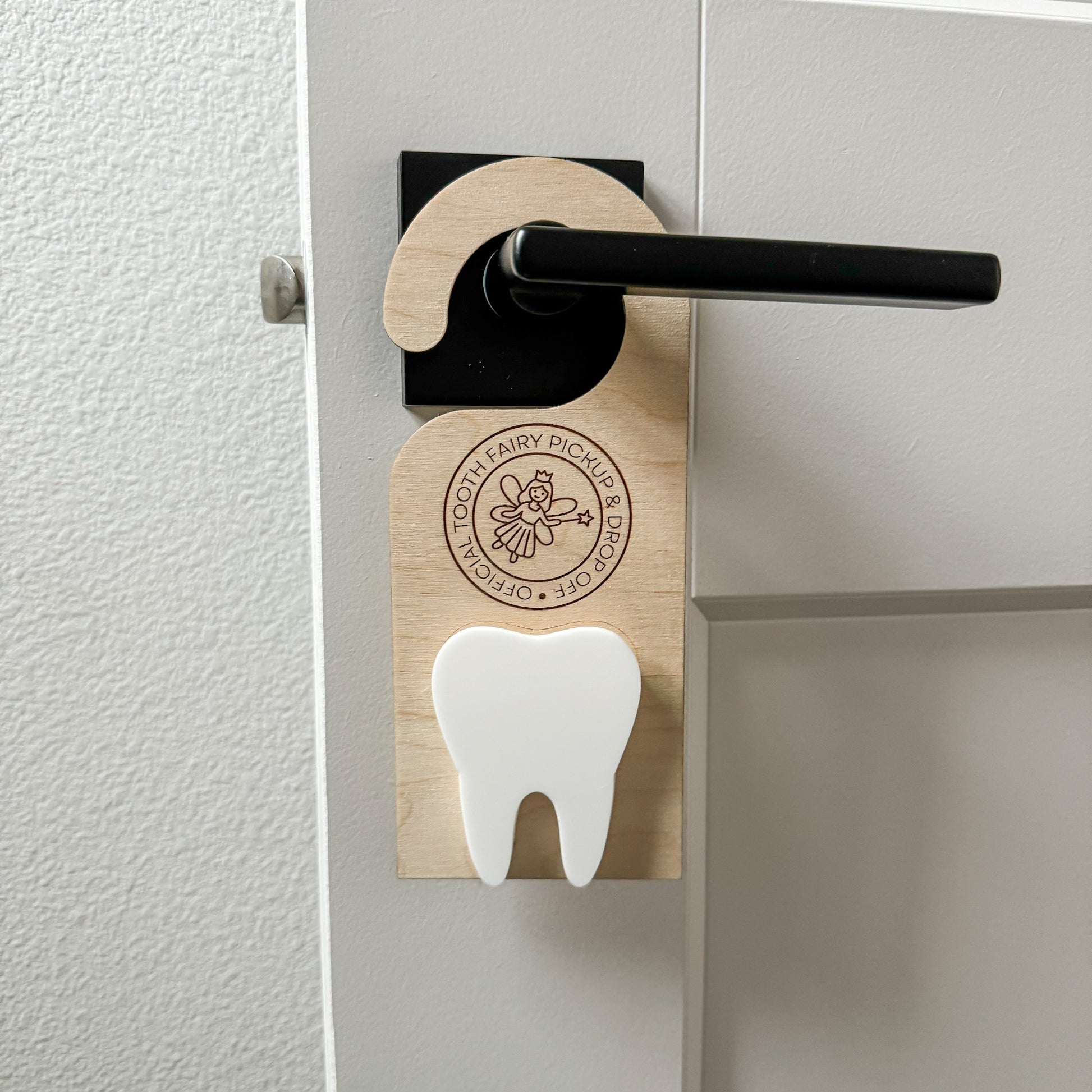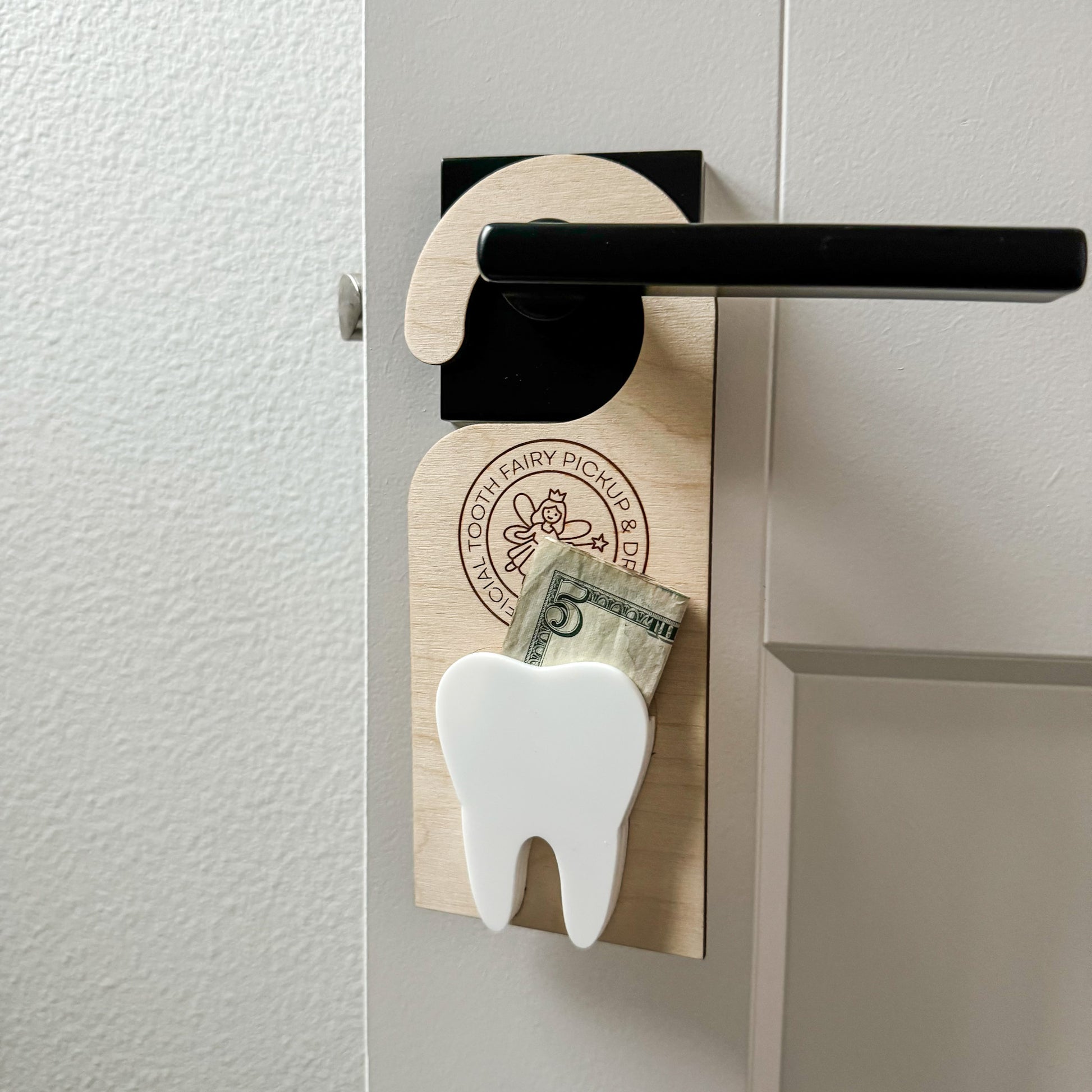 This is a fun way of sending off your little one's tooth to the tooth fairy! And without the risk of waking them up! Simply hang the sign on your child’s doorknob, put their tooth into the white tooth shape. While they’re asleep the tooth fairy can exchange the tooth for money.